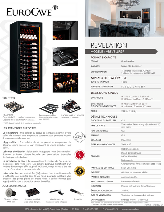 Cellier EuroCave Revelation - Modèle Large - 166 BouteillesPrix habituel $11,199.00 CADPrix habituelPrix unitaire / par-