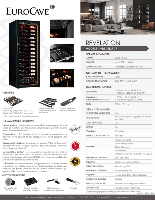 Cellier EuroCave Revelation - Modèle Large - 182 BouteillesPrix habituel $11,999.00 CADPrix habituelPrix unitaire / par-