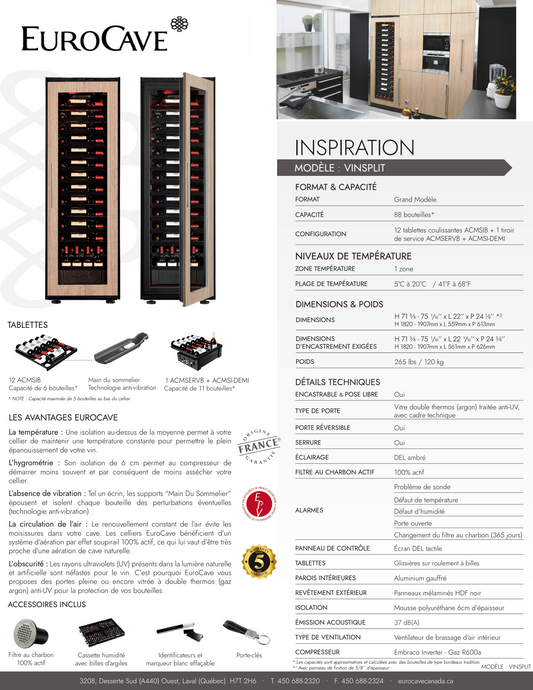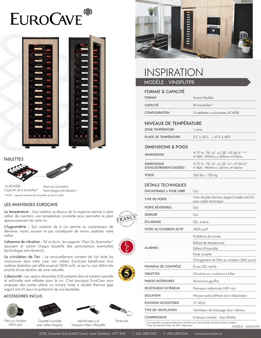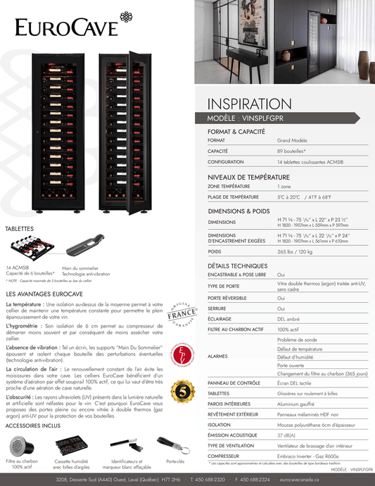 Cellier EuroCave Inspiration - Modèle Large - 89 BouteillesPrix habituel $12,199.00 CADPrix habituelPrix unitaire / par-