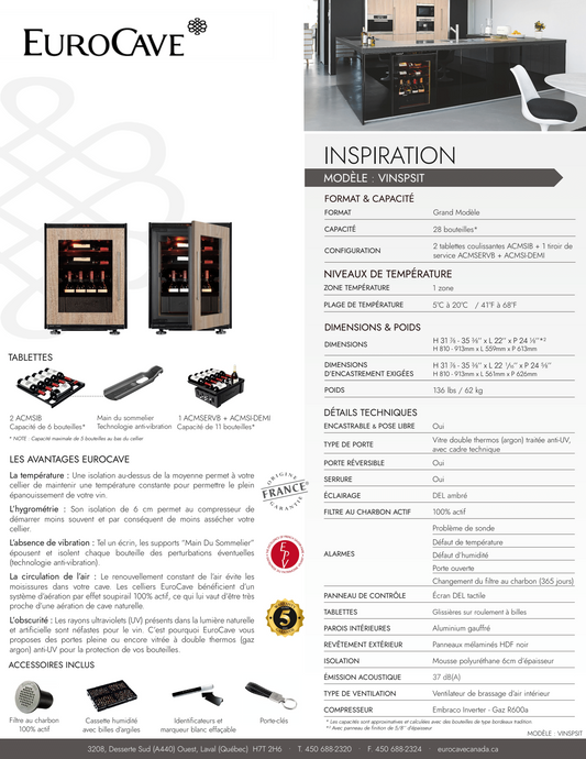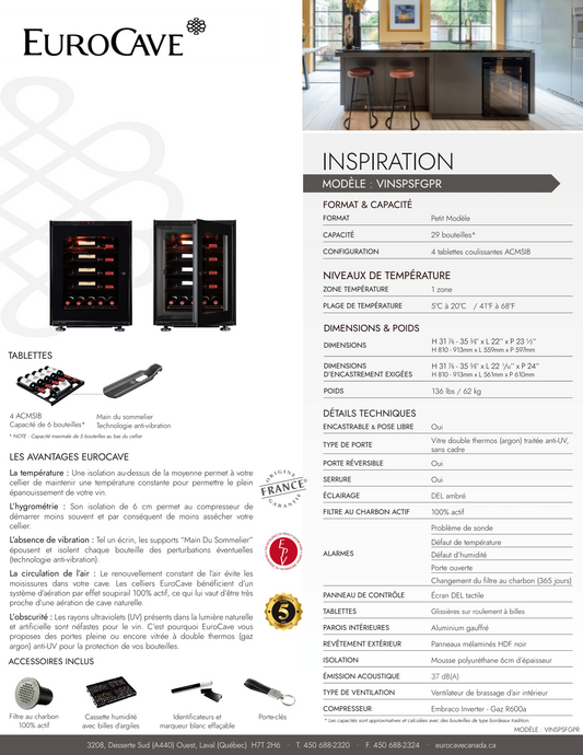 Cellier EuroCave Inspiration - Modèle Small - 29 BouteillesPrix habituel $6,899.00 CADPrix habituelPrix unitaire / par-