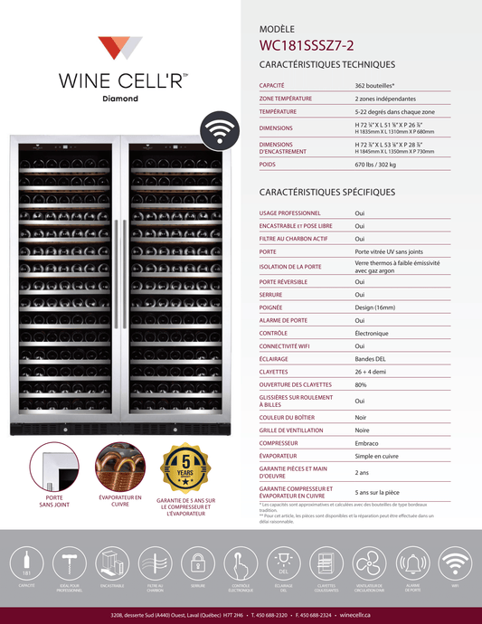 Wine Cell'R Cellar - Diamond - 4 Zones - 724 Bottles