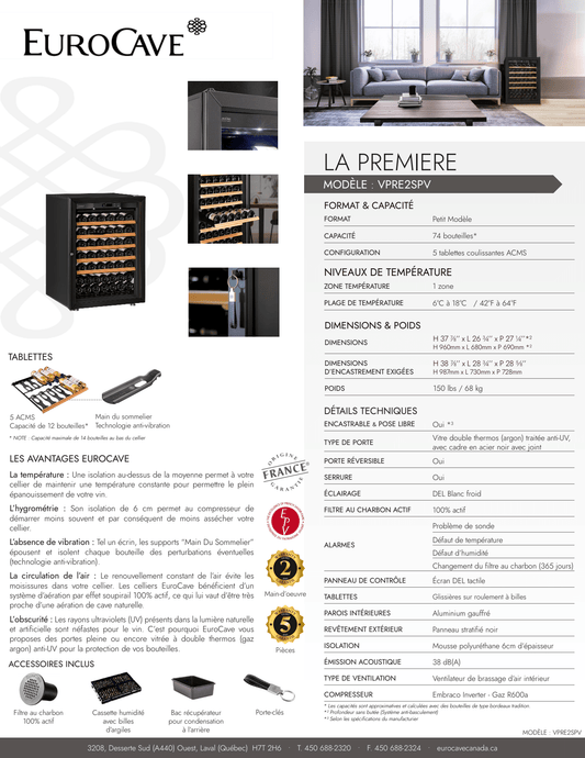 EuroCave La Première Cellar - Small Model - 74 Bottles