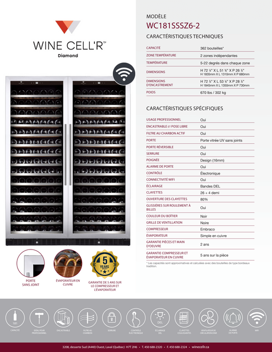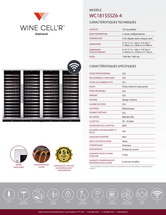 Wine Cell'R Cellar - Diamond - 4 Zones - 724 BottlesRegular price $12,599.00 CADRegular priceUnit price / per$13,999.00 CADSale price $12,599.00 CADSale