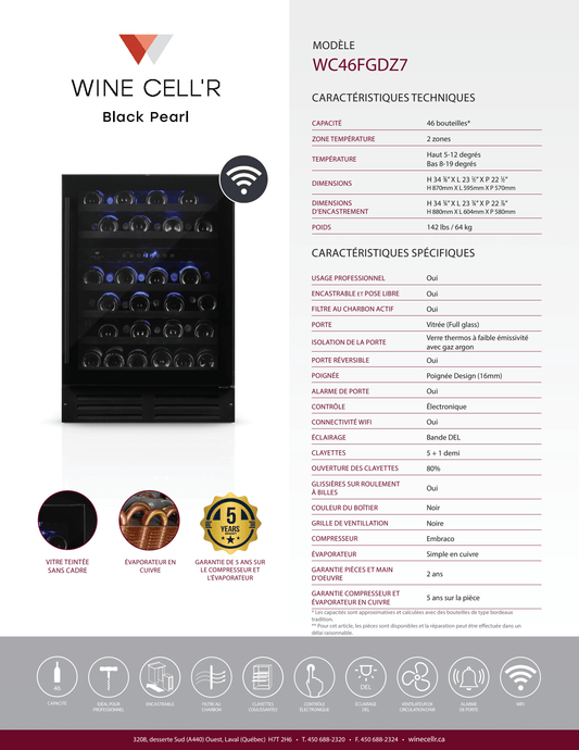 Black Pearl Series Dual Zone Cellar for 46 Bottles