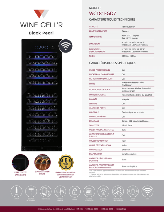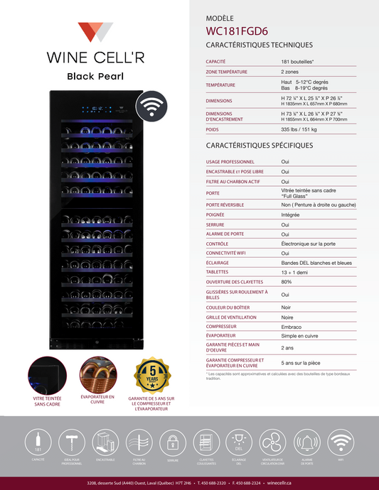 Black Pearl Series Dual Zone Cellar for 181 Bottles