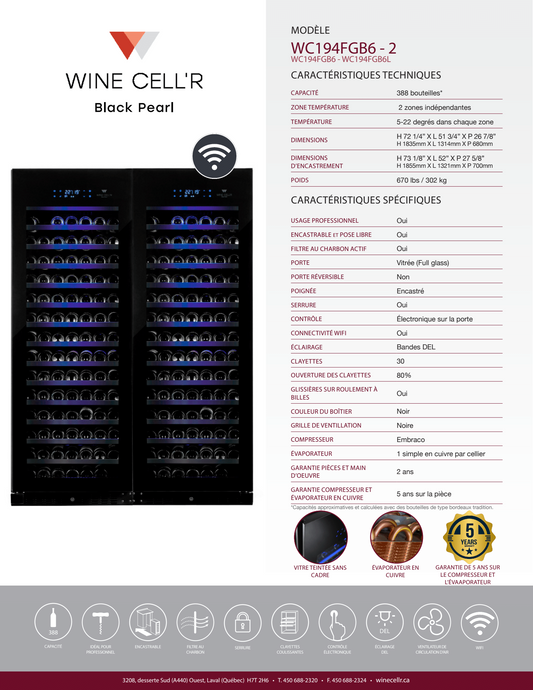 Black Pearl Series Dual Zone Cellar for 388 Bottles