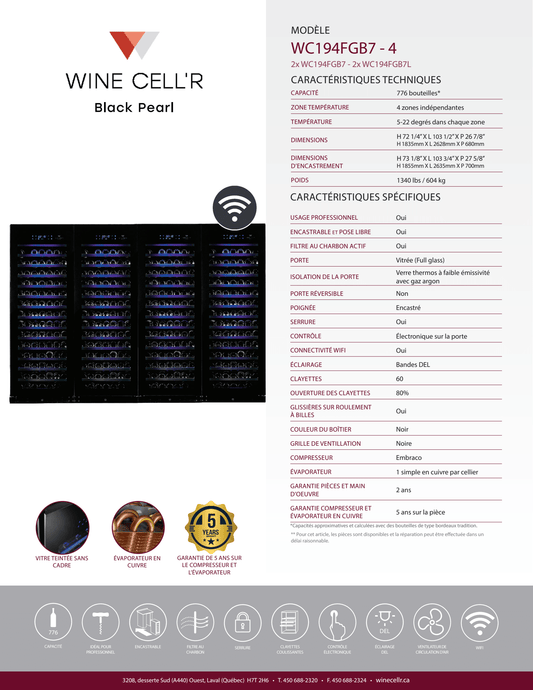 Cell'R Wine Cellar - Black Pearl - 4 Zones - 776 Bottles