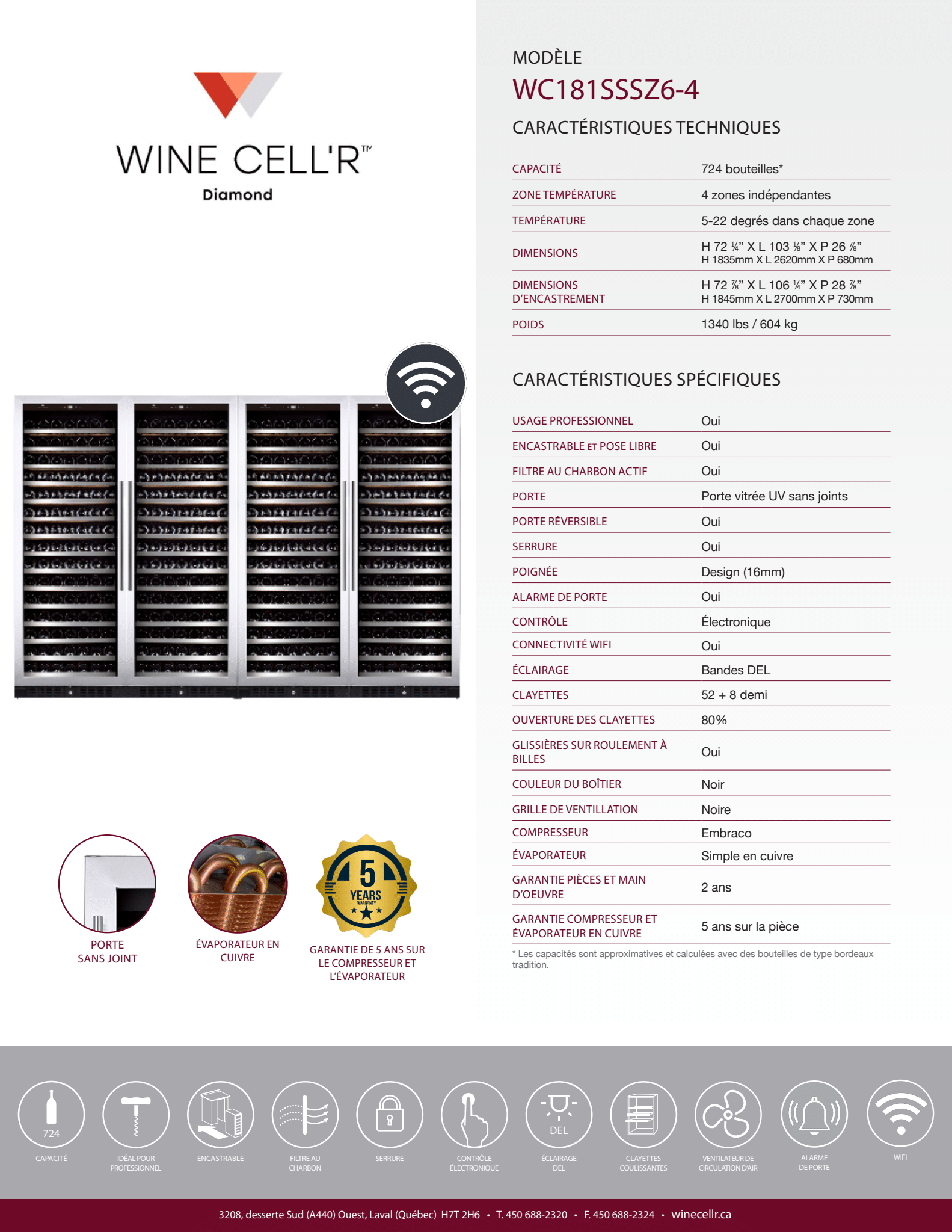 Wine Cell'R Cellar - Diamond - 4 Zones - 724 Bottles