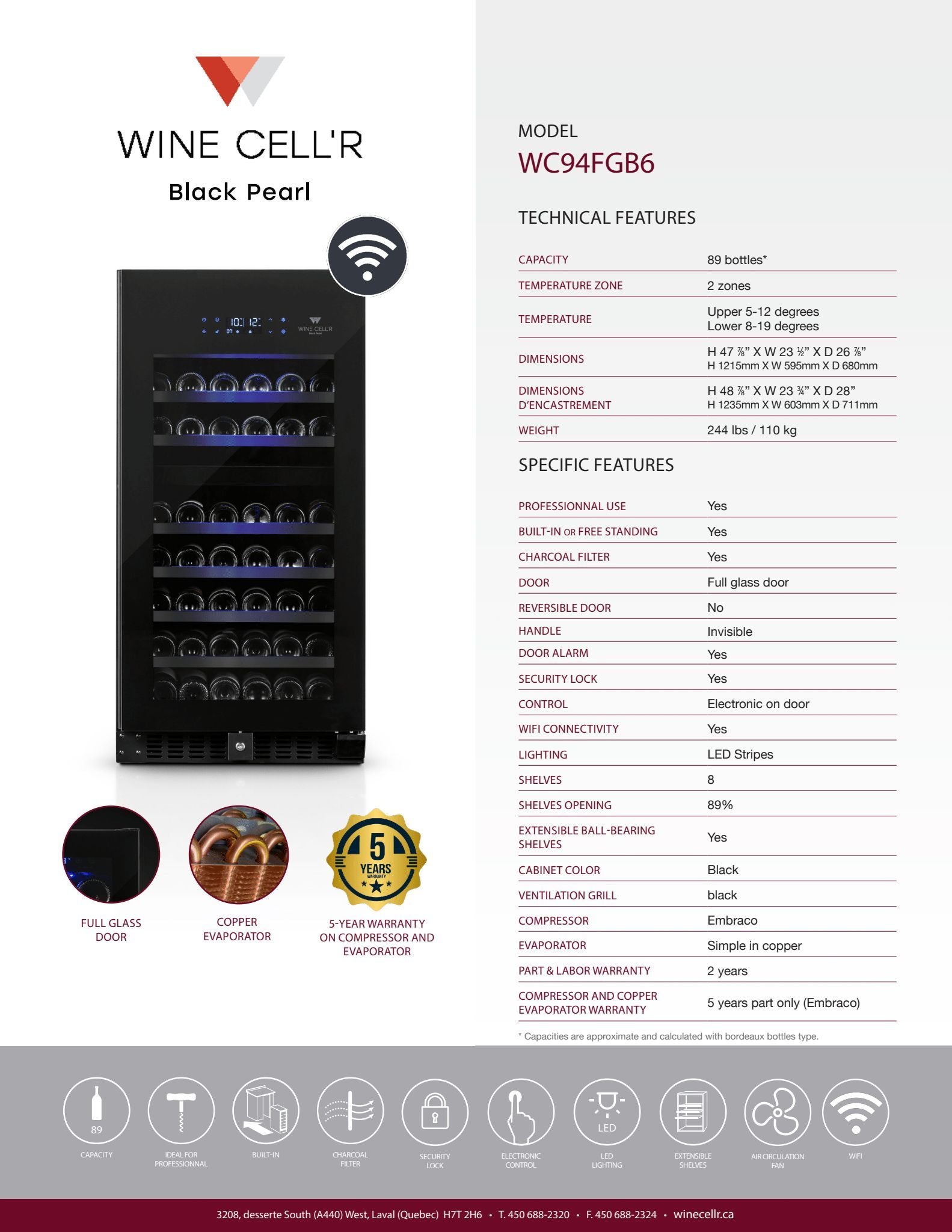 Wine Cell'R Black Pearl 89-bottle wine cellar
