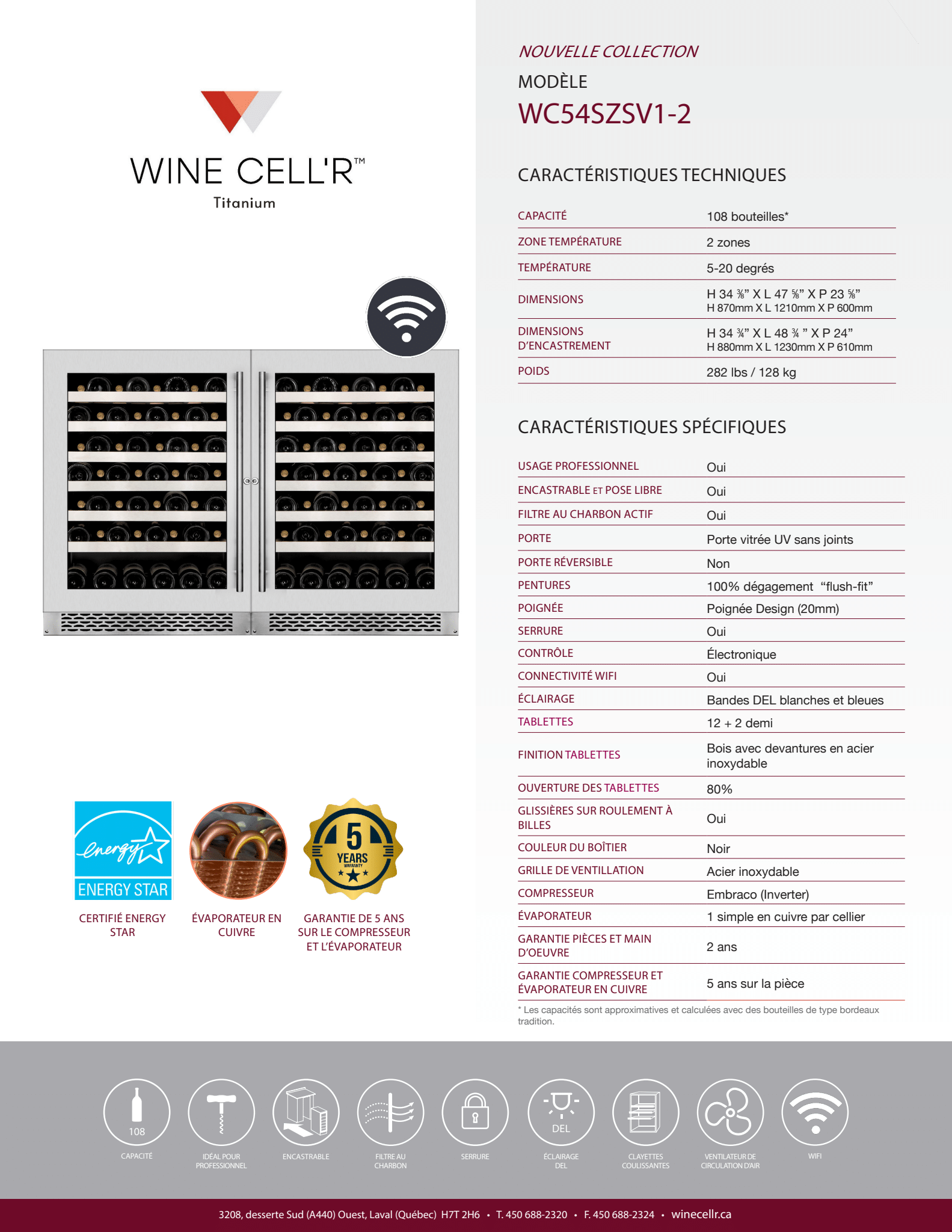 Connected : Control your cellar remotely with Wi-Fi connectivity.